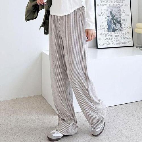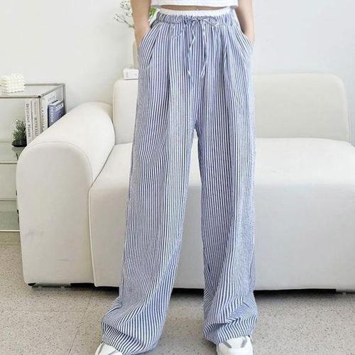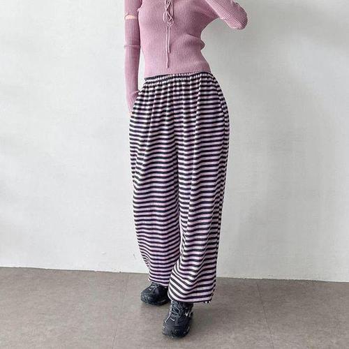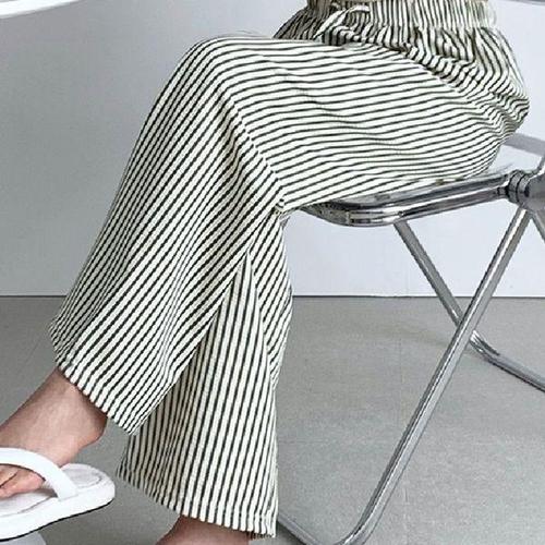 [셀러허브_여성트랜드패션]바지 밴딩 팬츠 홈웨어 하이웨스트 와이드 스트라이프