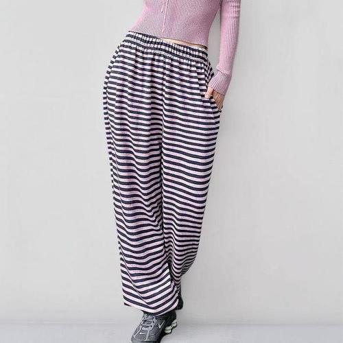 |KMP8FE4|여성용 면 스판 와이드 스트라이프 팬츠