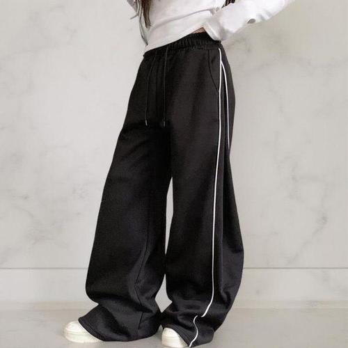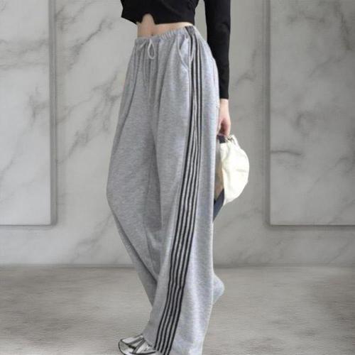 [옷자락]여성 캐주얼 트랙 사이드 스트라이프 밴딩 와이드 바지
