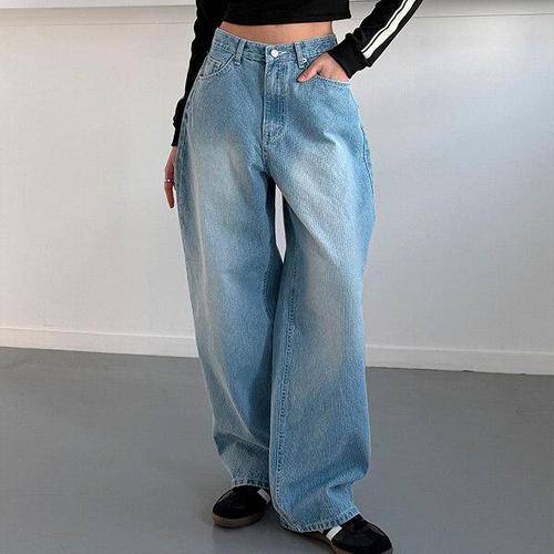 에미올 데일리 빅포켓 워싱 통 세미 와이드 레그 데님팬츠 EPJN007