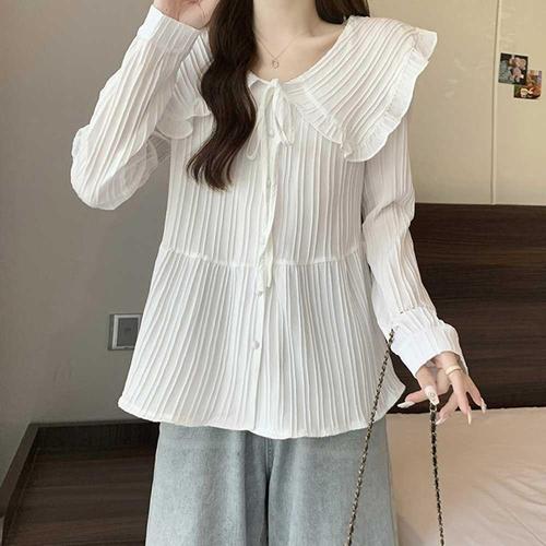 카라 스트라이프 자수 캐주얼아우터 긴팔셔츠 NF-25여성 여자 여름 빅사이즈 블라우스