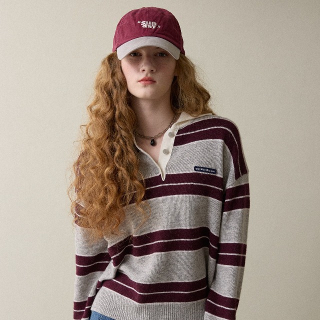 style dr 남성용 워셔블 빅사이즈 오버핏 카라 스트라이프 니트 티셔츠 스웨터