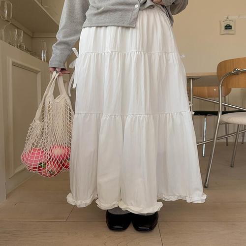[엘루이즈][엘루이즈] 세엘르 퓨어 프릴 리본 스트랩 올밴딩 롱 스커트