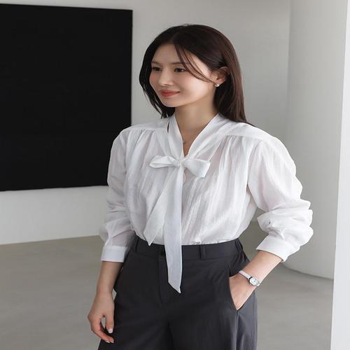 [르샵]리본 스트랩 셔링 긴팔 블라우스 (DQ1BA020A)