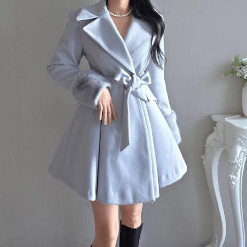용수철 가을 긴 소매 스트랩 모직 재킷, 루즈 하이 엔드 스플라이싱 짧은 모피 소매 혼방 울 코트, 레이스 u