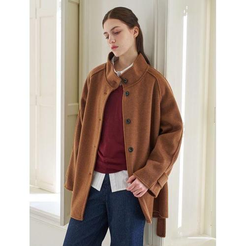 [위시드]하이넥 울 블렌드 스트랩 하프 코트 (WICDCT004)