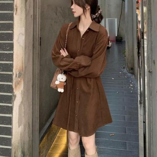 [오너클랜]인기상품 여성 버클 스트링 코듀로이 셔츠 원피스 미디원피스 [WFG36EL_250916]