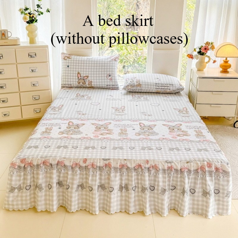TEMU 체크무늬 귀여운 애완 토끼 프린트 침대 스커트 (베개 커버 제외), 침실 스타일링, 임대 집을 위한 아늑한 리모델링, 그리고 상쾌한 홈 데코 디테일에 적합