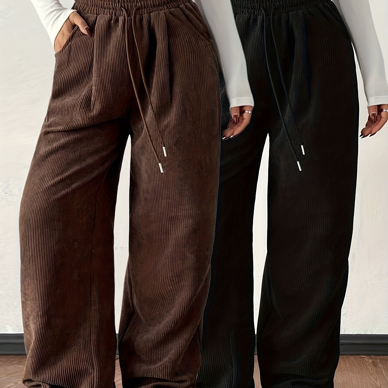 TEMU YY0916105 신축성 허리 캐주얼 코듀로이 와이드 레그 팬츠