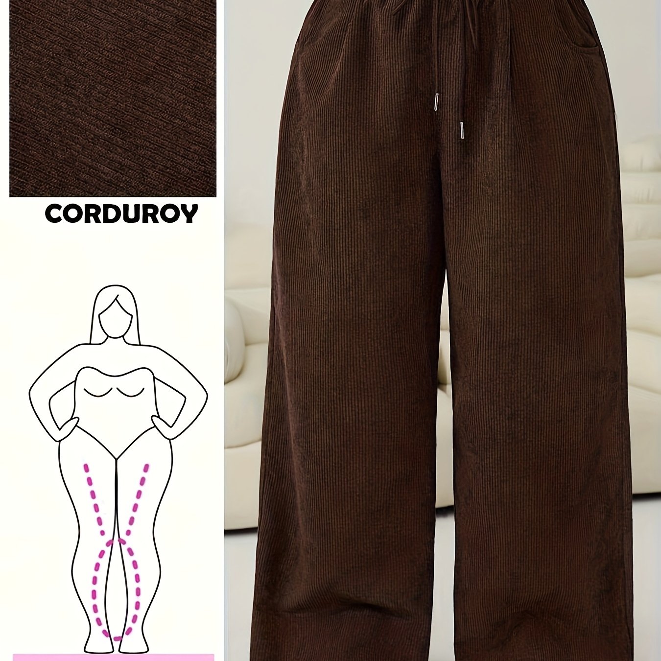 TEMU 플러스 사이즈, 여성용 플러스 사이즈 와이드 레그 빈티지 팬츠 - 하이웨이스트 풀 길이 벨트리스 디자인 (드로스트링 허리), 솔리드 컬러 캐주얼 엘레강트 겨울 팬츠, 가을/겨울용, 세탁기 사용 가능한 레그 트라우저