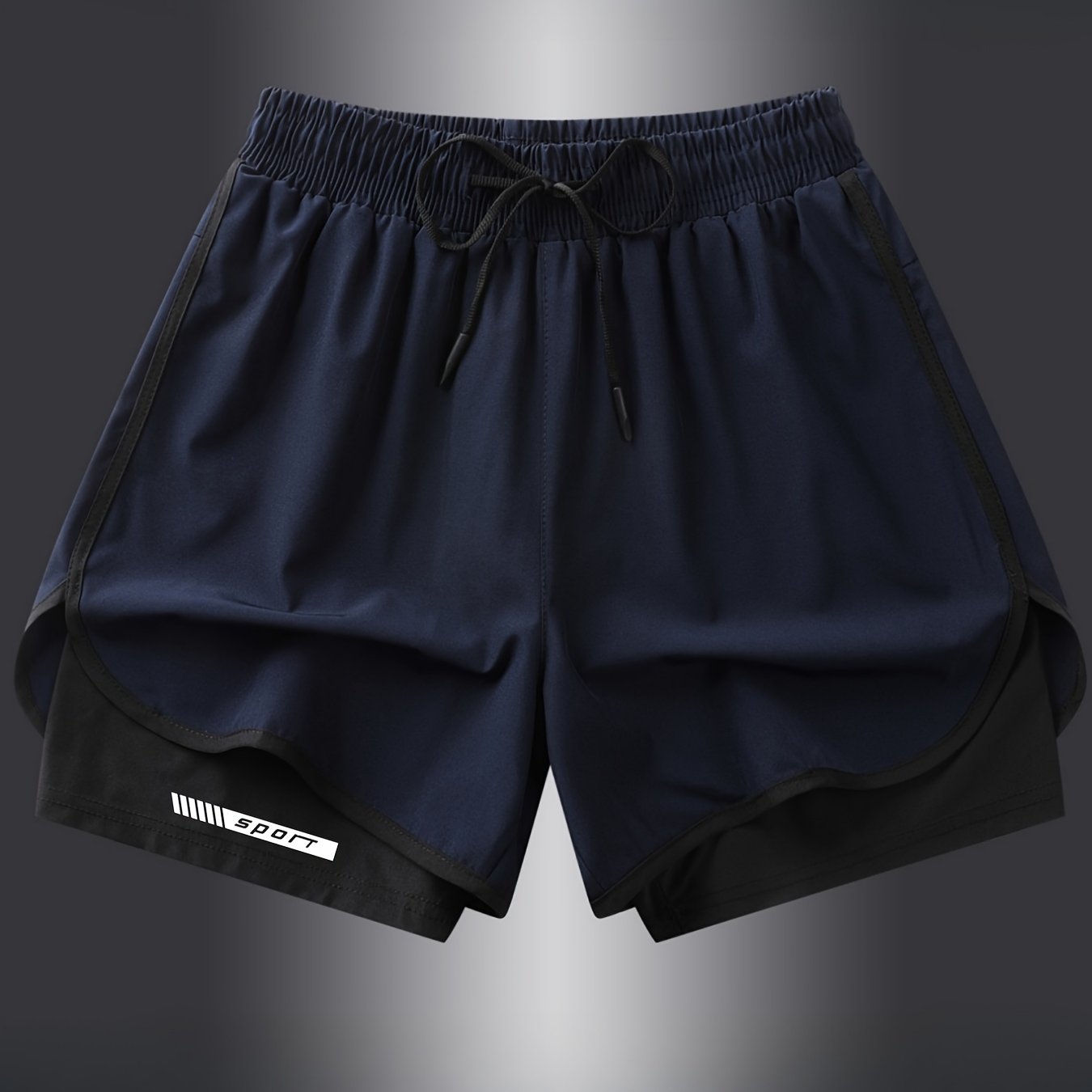 TEMU 1개 남성용 여름 퀵드라이 운동 반바지 - 92% 폴리에스터, 8% 스판덱스, 흡습 통기성 이중 레이어 디자인, 조임끈이 있는 신축성 허리, 가벼운 5인치 짧은 바지 (체육관, 축구, 농구, 사이클링 & 캐주얼 웨어), 스포츠 액티브웨어, 매끄러운 질감 원단, 스트레치 소재, 체육관 애호가용