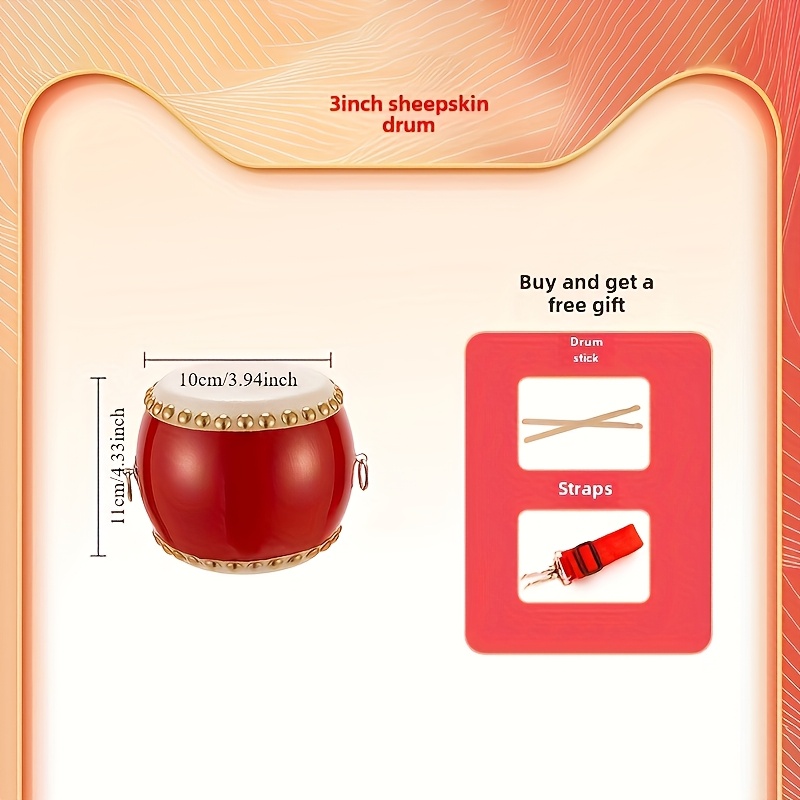 TEMU 흰색 스터드가 특징인 전통적인 레드 가죽 드럼 - 튼튼한 플라스틱 구조, 나무 막대와 스트랩 포함 - 초보자 및 팬에게 이상적, 라이브 쇼 필수품, 입문형 타악기, 드럼 장비