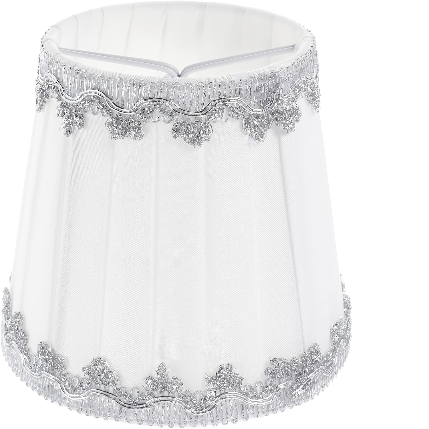 TEMU 실버 레이스가 돋보이는 화이트 사틴 램프쉐이드 - 클립식, 뾰족한 전구에 완벽
