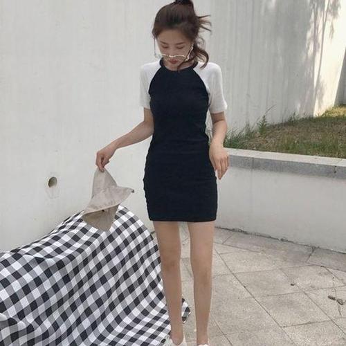 글램핏 / 데일리 라운드넥 반팔 스판 미니원피스 11컬러