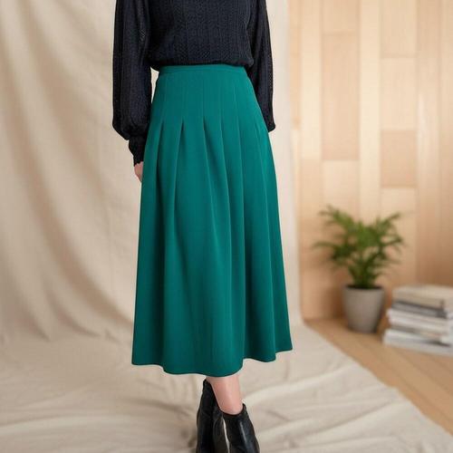 [옷자락]여성 청록색 플리츠 롱스커트 대형 스판 구김없는