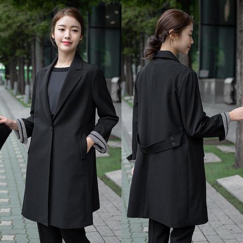 |CCJ6D3B|여성 폴리 스판 싱글 버튼 긴 간절기 자켓