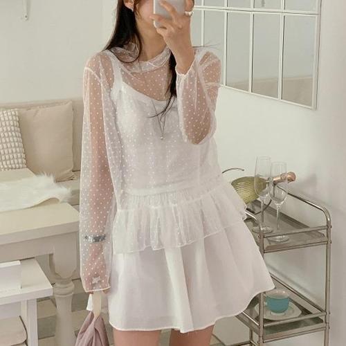 [다잇템][다잇템] 여자 땡땡이 프릴 박스 비침 폴라넥 내의 블라우스_24742952_588872