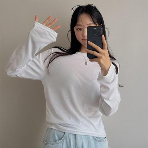 [다잇템]여자 민무늬 기본긴팔 U넥 일상룩 내의 티셔츠
