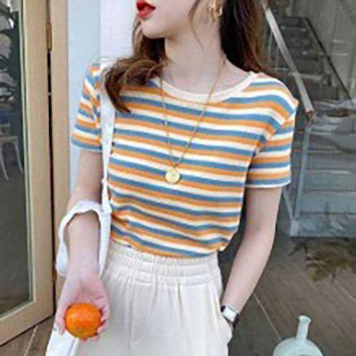 [셀럽하우스]가벼운니트 GTYO8469 페이트숄 스프라이프패턴 여름 반팔티셔츠