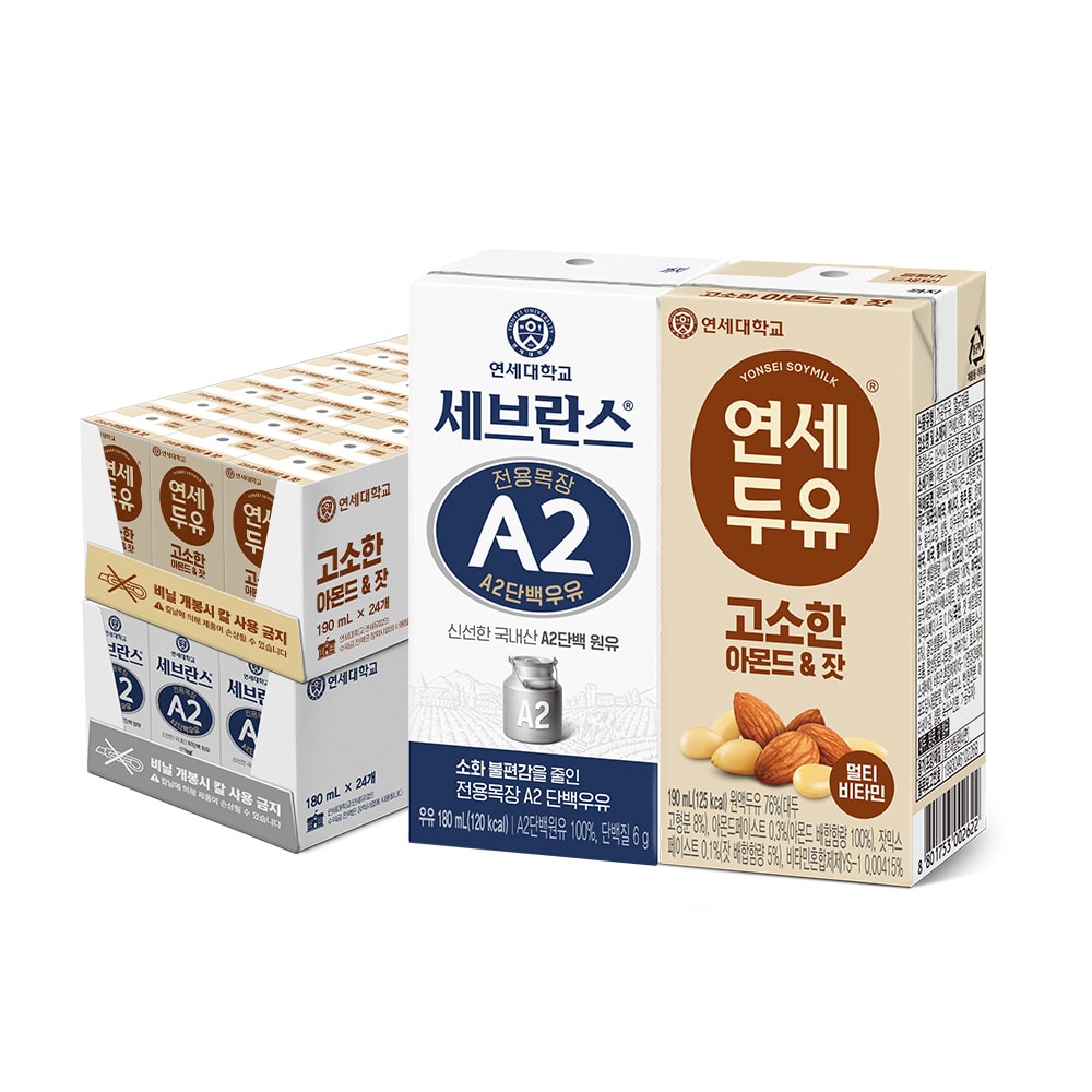 세브란스 A2 단백우유 180ml*24팩+아몬드 잣 190ml*24팩