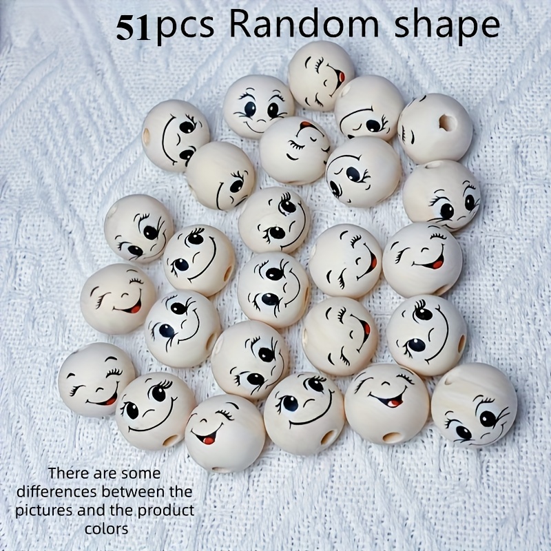TEMU 표정 있는 눈이 있는 51개 천연 나무 구슬 - DIY 주얼리 만들기용 나무 공예 구슬, 웃는 얼굴과 찡그린 얼굴 눈, 키체인, 포푸리 및 모든 기술 수준(초보자부터 전문가까지)을 위한 매끄러운 구형 목재