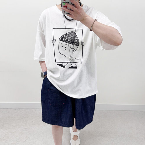 미즈큐즈 / 삼각머리 소년 프린트 루즈핏 박시 슬라브 반팔티 3co