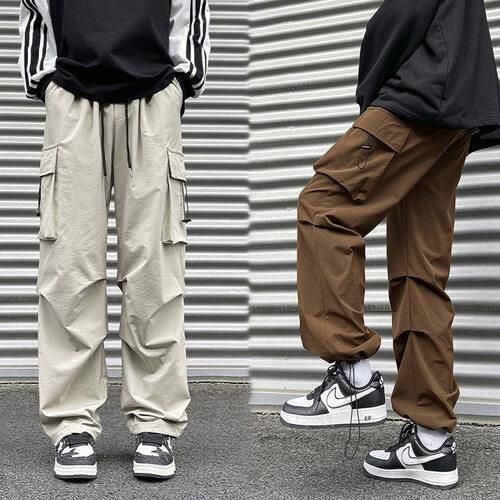 [아이에스이랩]허리밴딩 카고 와이드 스판 슬랙스 조거팬츠 I2PM027