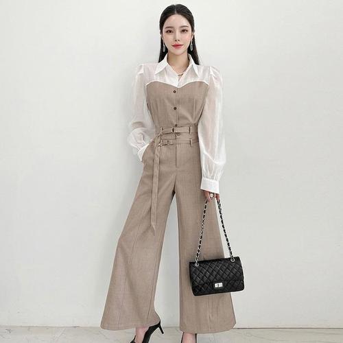 머스트비 벨티드 카라 셔츠 와이드슬랙스 셋업