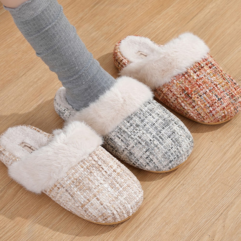 벨리아 트위드 여성 슬리퍼 푹신한 방한 미끄럼방지 실외 사무실 거실