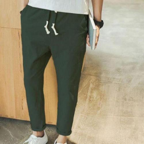 [셀러허브_여성트랜드패션]바지 여름 슬림핏 린넨 남성 롤업 밴딩 팬츠
