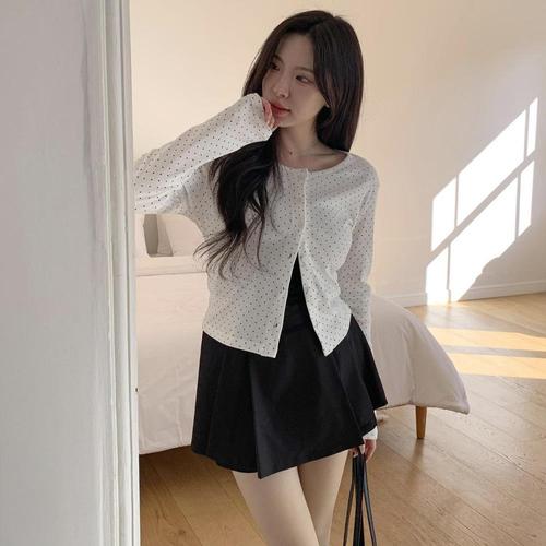 [옷자락]여성 봄 여름 면 도트 슬림핏 세미크롭 가디건