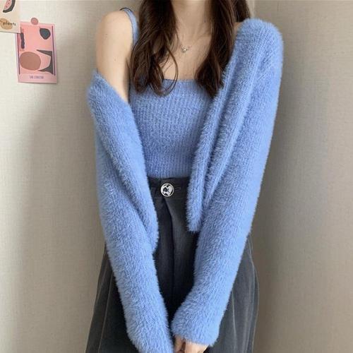 [다잇템]여성 슬림핏 홀터네크 깊이 단가라 코디 가디건