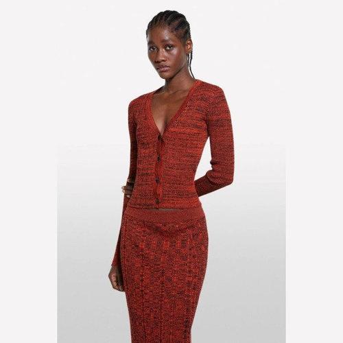무신사스탠다드 우먼즈 리브드 슬림 칼라드 가디건 브라운 1666422