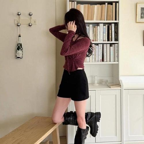 라티움 HC34 앞오픈형띠라인배색슬림짧은니트가디건 T2613CD07