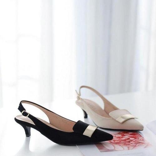 [셀러허브_여성트랜드패션]골드장식 뾰족코 미들힐 슬링백 스트랩