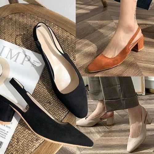 [셀러허브_여성트랜드패션]여성 데이트 미들힐 출퇴근 웨딩 스웨이드 슬링백 펌프스힐 스틸 통굽 레토 구..