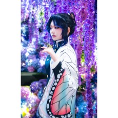 코초우 시노부 코스프레 의상 비치 클로크 여성 기모노 카디건 클로크 비치 휴가 비키니 나비 로브 탑스 일본 애니메이션