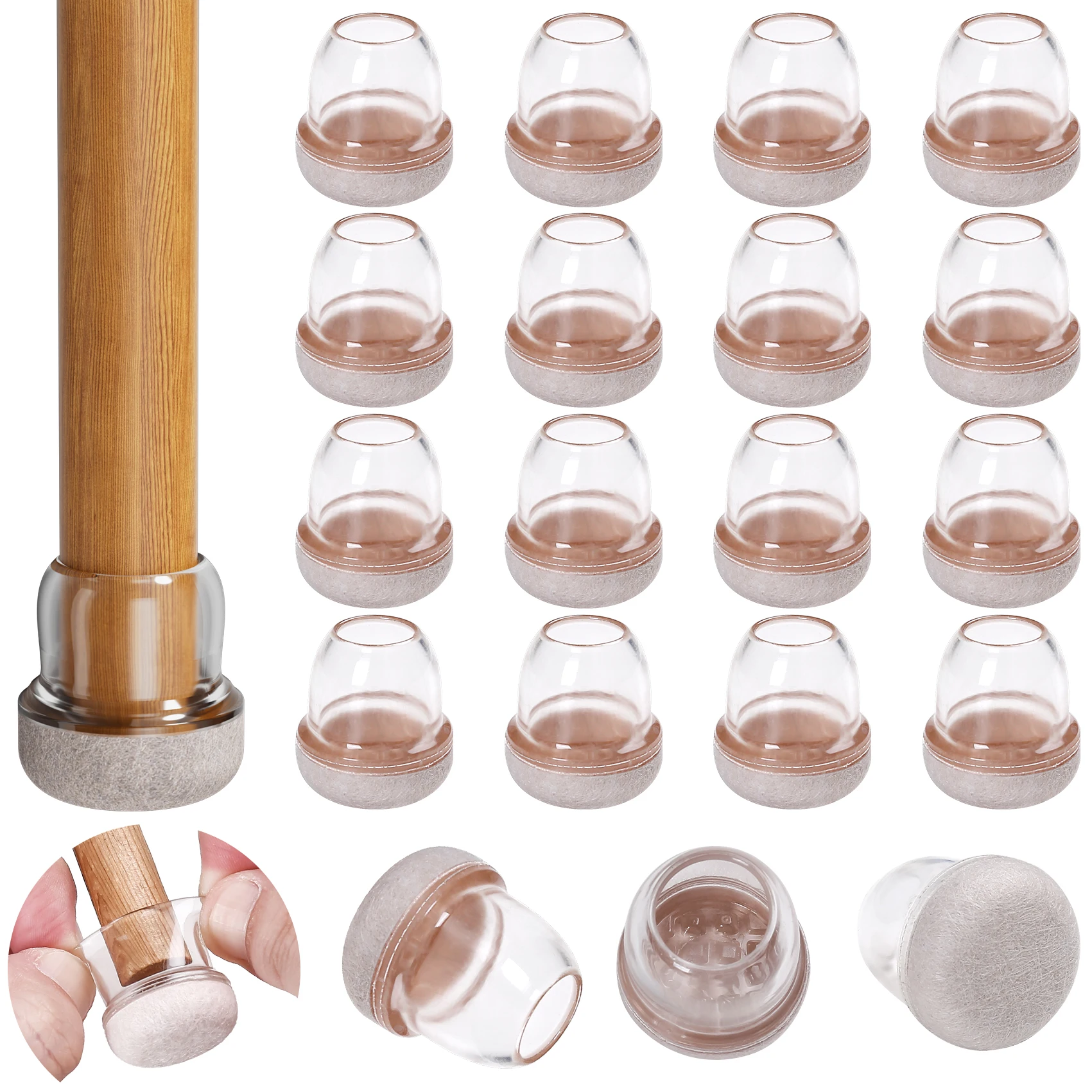 TEMU 의자 다리 바닥 보호대, 나무 바닥용 의자 다리 보호대, 실리콘 캡, 펠트 강화 바닥 보호, 스크래치 방지, 소음 감소, 16개입 투명 사각형