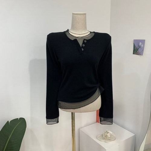 씨샵인더룸 / 치리 모직 시스루 레이어드 단추 긴팔 티셔츠 2color C