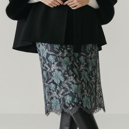 [헬렌]로아체 레이스 시스루 비즈 플라워 스커트 데이비즈시