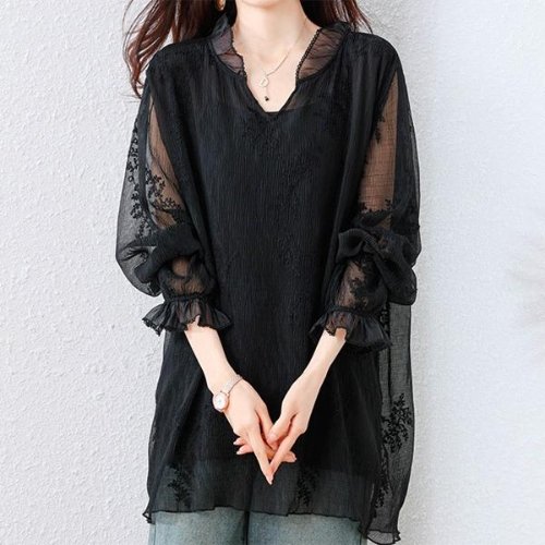 ★베스트★[블랙퀸] 시스루 소매 롱 블라우스 blk000131