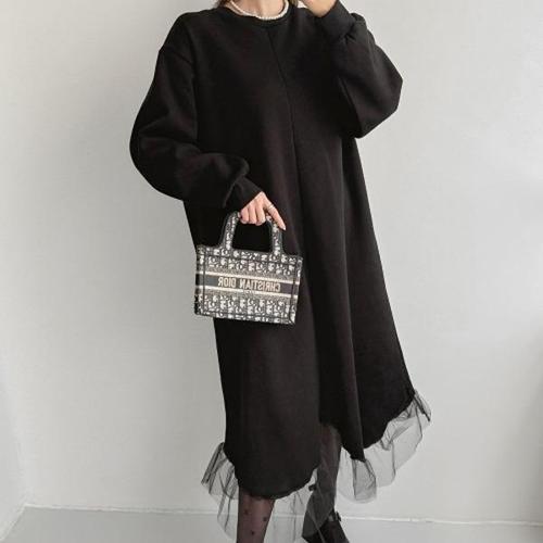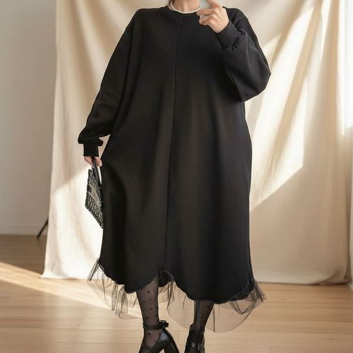 [옷자락] 여성 시스루 레이스 기모 빅사이즈 겨울 롱 원피스