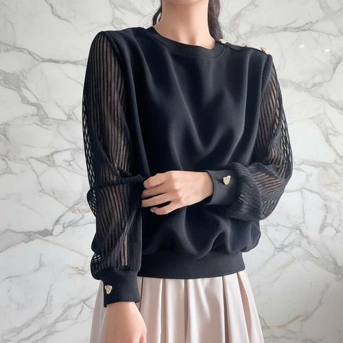 [미라클세븐]여성 하트 버튼 시스루 플리츠 긴팔 루즈핏 봄 셔츠