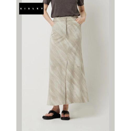 [시슬리]그래픽 피그먼트 밴딩 스커트 (SASK32531 다크그레이,베이지)_DJ