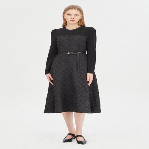 시슬리 니트 패치 셔링 롱 원피스 SAOPC9431 BK