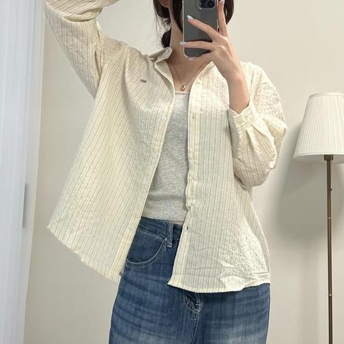 [신상오픈런]여성용 루즈핏 시어서커 스트라이프 셔츠 블라우스