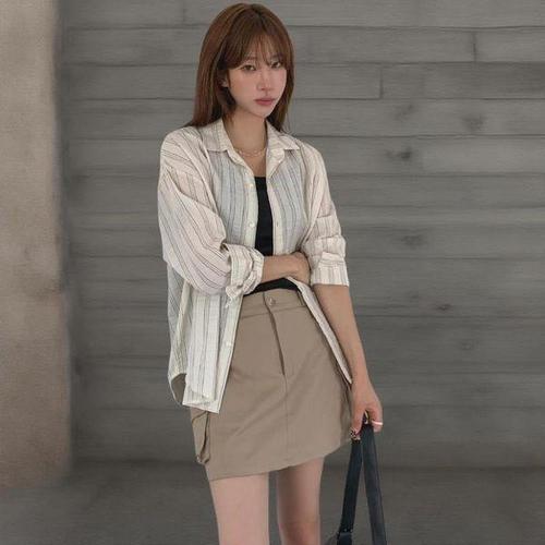 [옷자락] 여성 잔잔 스트라이프 오버핏 면혼방 시어서커 남방
