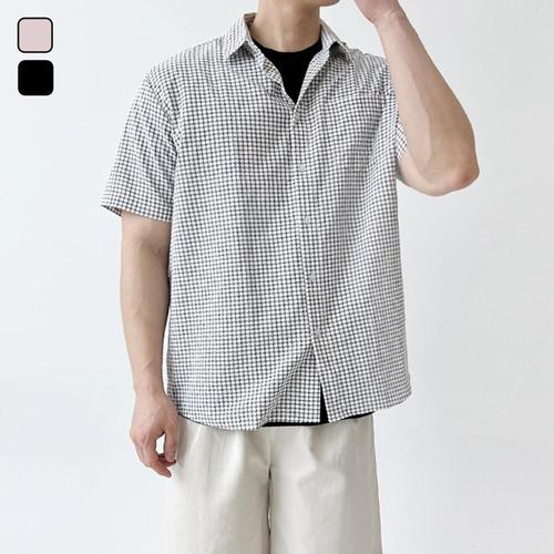 [리빌모아]여름 남자 오버핏 시어서커 체크 반팔 셔츠 DJ-SHH-SACCSS1023M