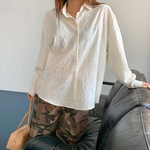 [신상오픈런]여성 루즈핏 시어서커 스트라이프 셔츠 블라우스