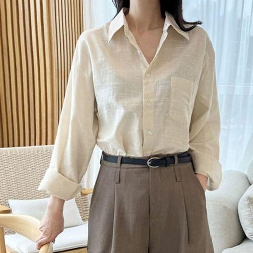 [에이치플러스몰]여성 깔끔한 오피스룩 레이어드 꾸안꾸 여유핏 가볍고 시원한 린넨 오버핏 셔츠